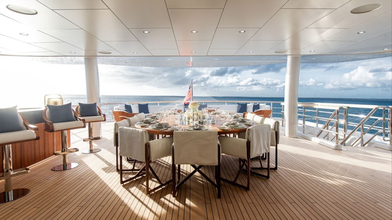 While the exterior lines remain the signature Espen Øino Amels 60 design, MEMORIES incorporates Owner-requested refinements. The sun deck layout replaced a conventional dining/bar area with a large sofa and a ceiling-mounted drop-down TV. The bridge deck aft area has been reimagined into an open-air cinema area, this doesn’t alter the hull lines but does change how that space is organised and experienced. These changes are part of the Limited Editions concept, which allows Owners to customise without major structural redesign.